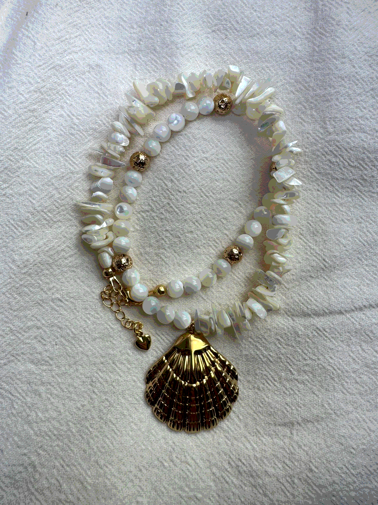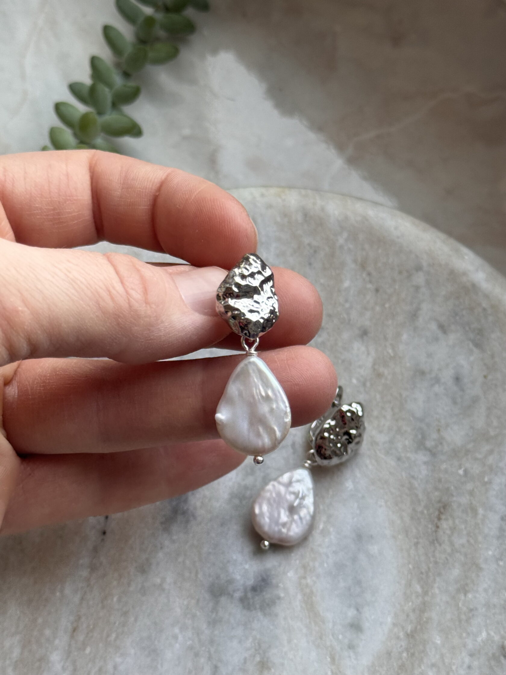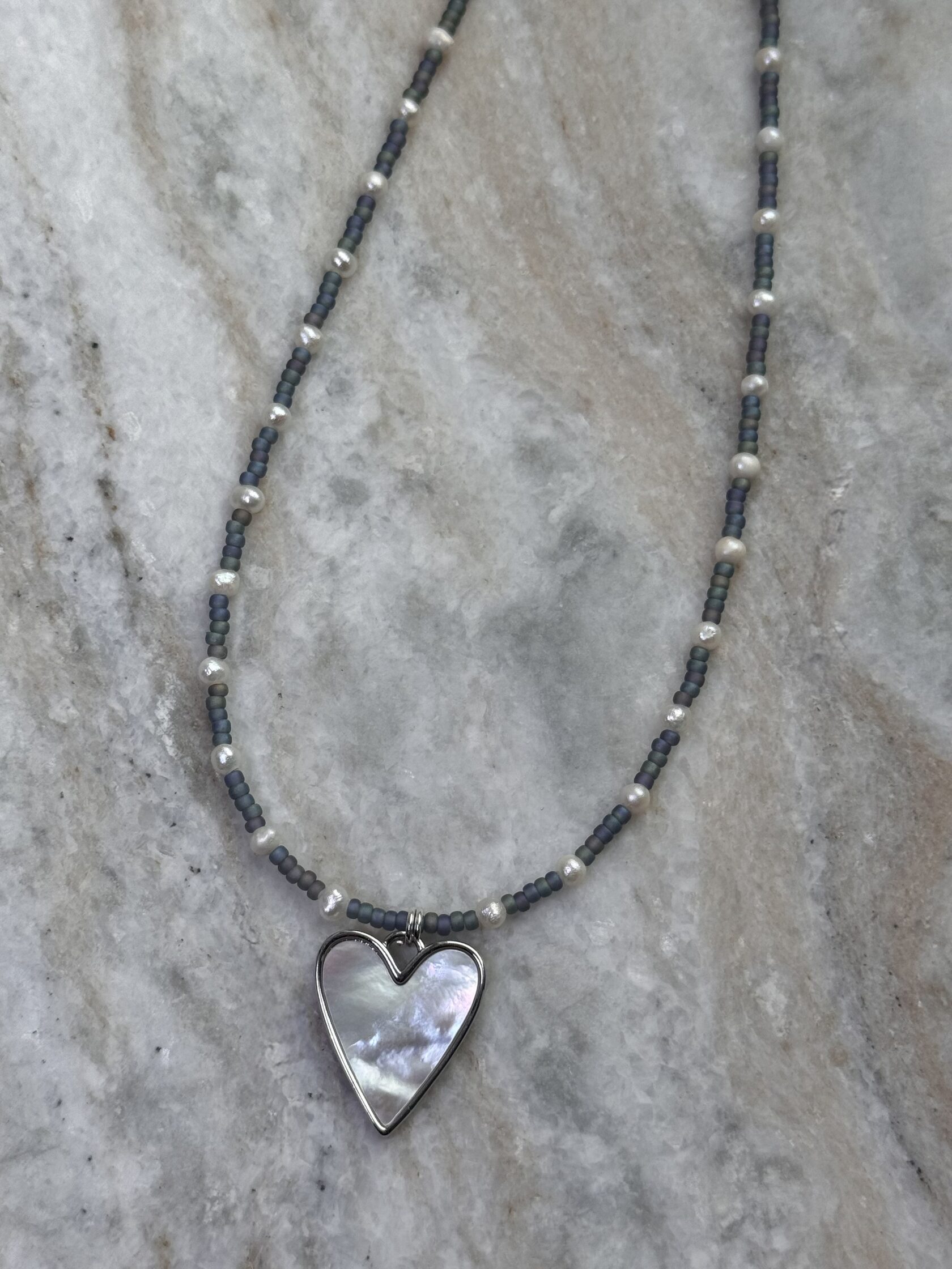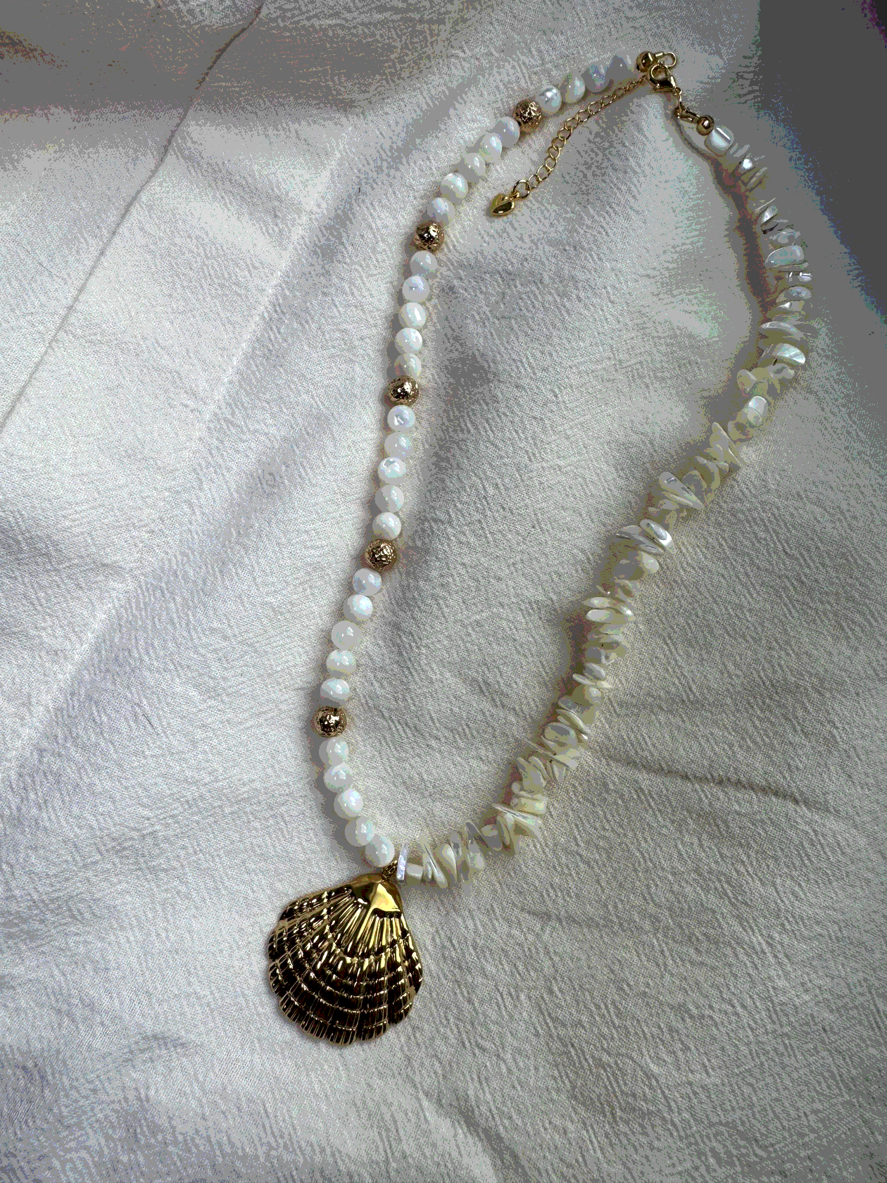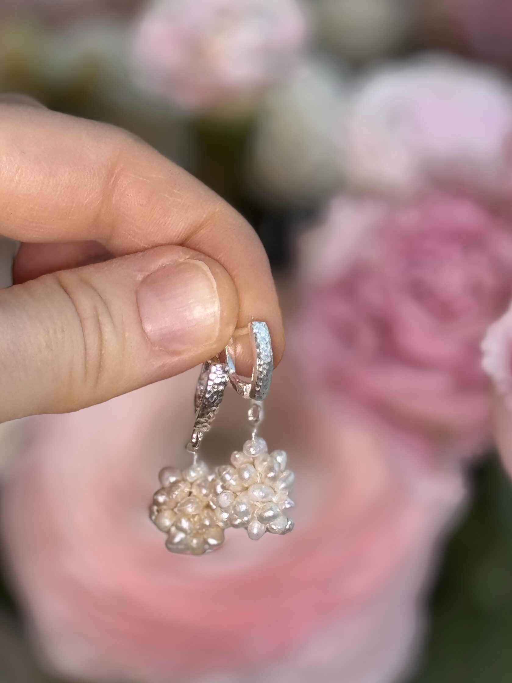 Двусторонняя бусина с натуральным белым и черным жемчугом в сочетании с жемчугом и турмалином свободной формы, повторяющим форму и цвет жемуга в бусине.